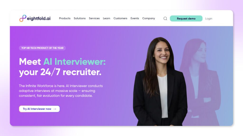 Eightfold AI is a powerful AI recruitment platform used by large enterprises for workforce planning and talent acquisition.