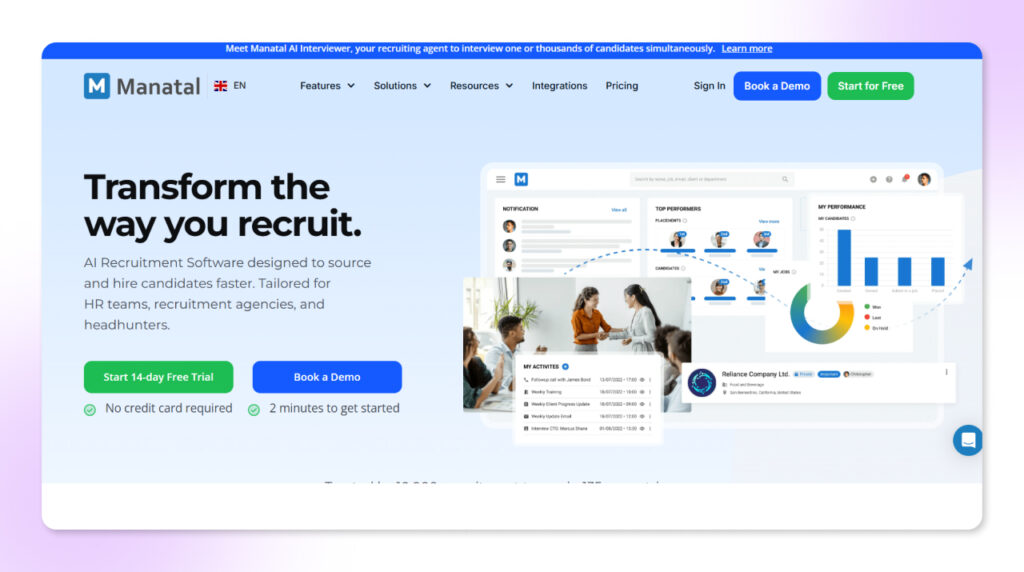 Manatal AI-powered ATS & recruitment CRM SMBs & agencies  Starts @ $15/user