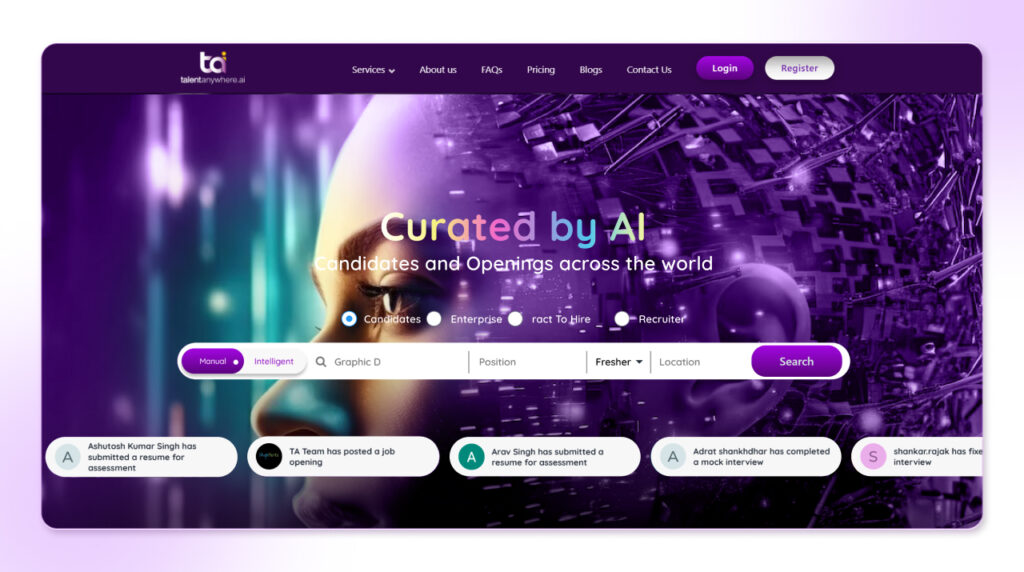 talentanywhere.ai is an AI-powered talent acquisition platform designed to help enterprises, recruiters, and hiring teams automate the entire recruitment process, from sourcing candidates to screening and interview management.